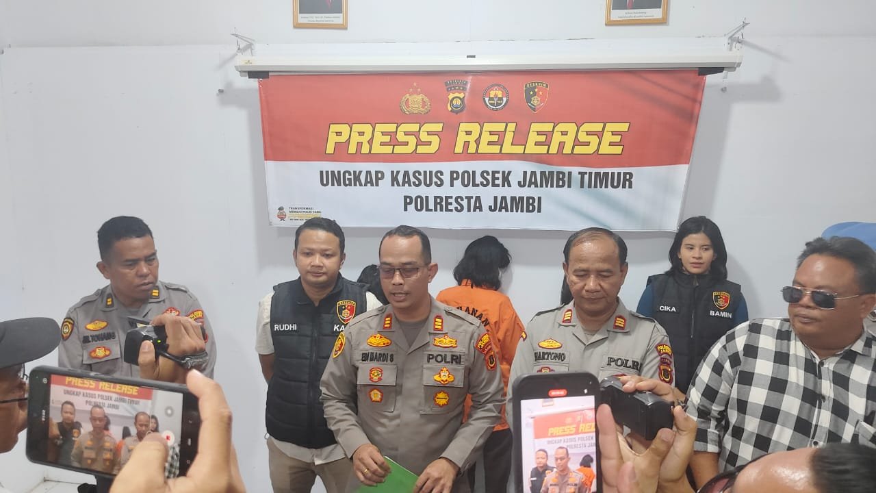 Jambi (Benuajambi.com)– Kepolisian Sektor (Polsek) Jambi Timur Polresta Jambi menggelar press release terkait keberhasilan mengamankan tiga orang emak-emak pelaku pencopetan yang sempat viral di media sosial usai beraksi di Pasar Baru Talang Banjar, Kecamatan Jambi Timur, Kota Jambi, Rabu (1/10/2025).