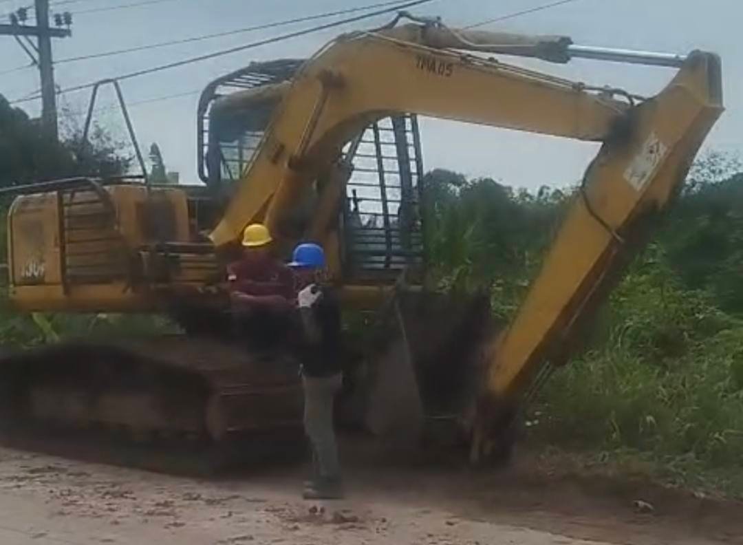 Muaro Jambi (Benuajambi.com)-Warga Kabupaten Muaro Jambi dibuat geram setelah alat berat jenis eskavator diduga milik kontraktor BBS, yang bekerja di area lingkup PT Musim Mas Talang Duku, melintas di atas jalan rigid beton tanpa alas pelindung. Akibatnya, bagian jalan terlihat mengalami kerusakan.