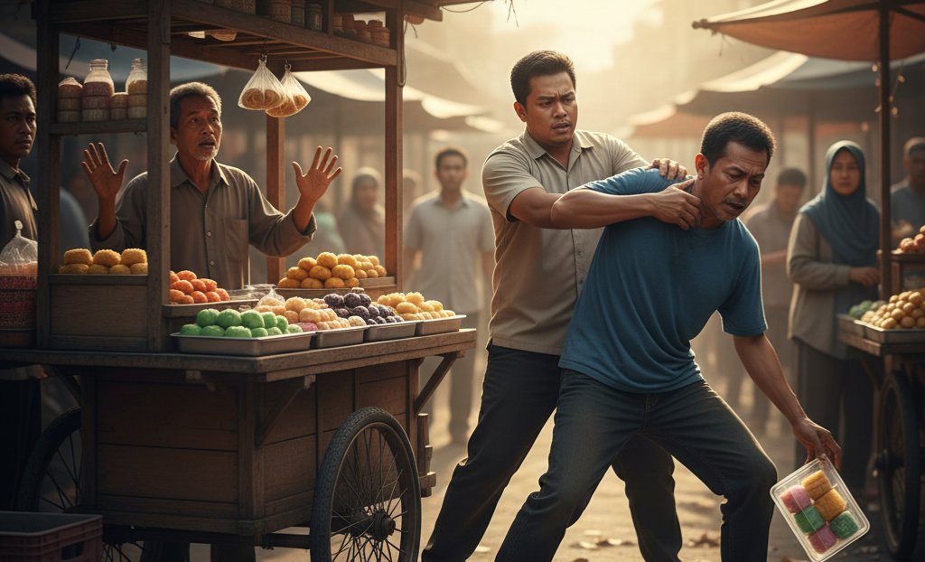 Menurut keterangan korban, kejadian bermula saat dirinya tengah memilih dan memasukkan kue ke dalam nampan belanja. Ketika meminta penjual menghitung jumlah kue yang diambil, situasi disebut berubah menjadi tegang.