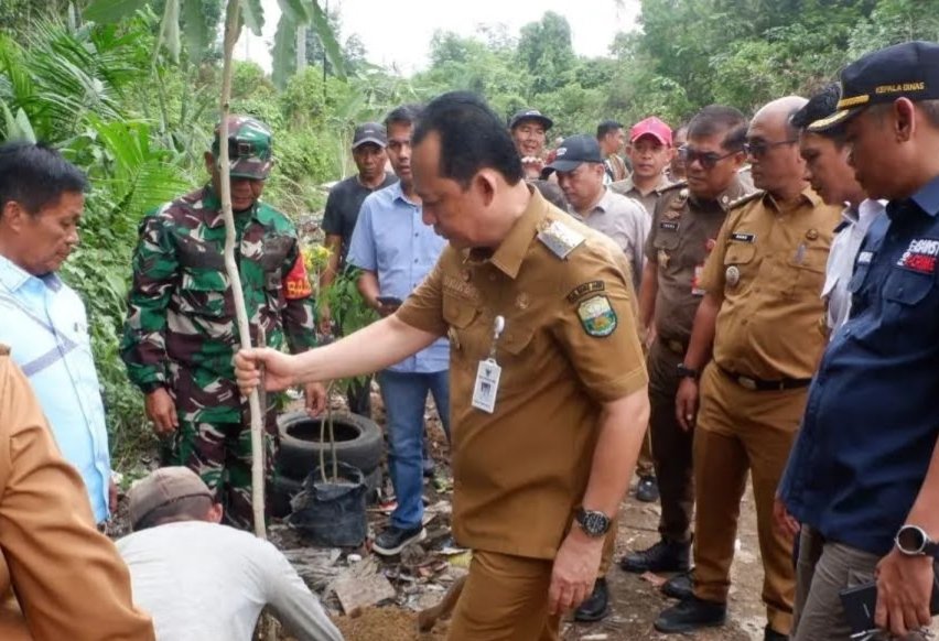 MUARO JAMBI – Bupati Muaro Jambi, Dr. Bambang Bayu Suseno (BBS), turun langsung meninjau lokasi tempat pembuangan sampah (TPS) ilegal di Jalan Lintas Pematang Gajah, jalur penghubung Muaro Jambi–Kota Jambi, Senin (6/10). Dalam kunjungan tersebut, Bupati secara tegas menutup dan menghentikan aktivitas pembuangan sampah liar di lokasi itu.