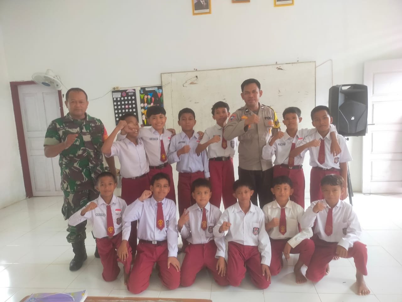 Bhabinkamtibmas bersama Babinsa dan perangkat Desa Penyengat Olak melaksanakan kegiatan sosialisasi dan himbauan tentang Bullying/ perundungan dan pemalakan kakak kelas ke adek kelas.
