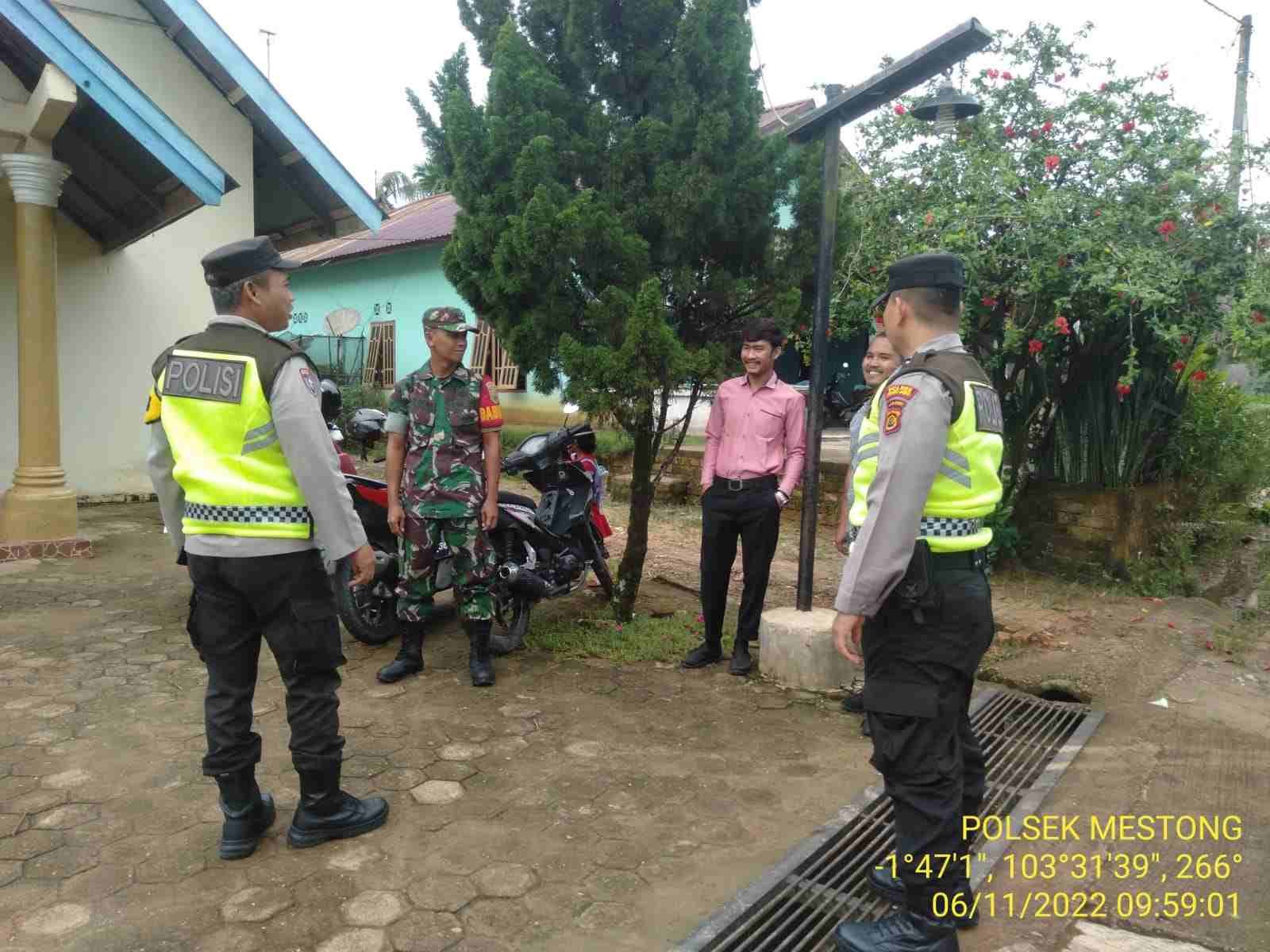 Muaro Jambi.(Benuajambi.com)-Personil Polsek mestong bersama Babinsa melaksanakan kegiatan pengamanan Jemaat yang sedang ibadah di Gereja GPIB Imanuel tempino saat ibadah Minggu 06/11/22 berlangsung