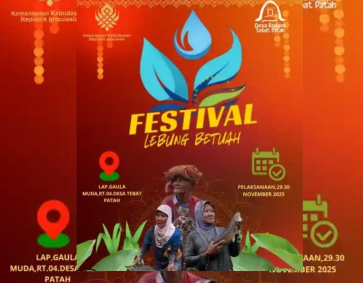 Desa Tebat Patah, Kecamatan Taman Rajo, Kabupaten Muara Jambi, bersiap menyelenggarakan Festival Lebung Betuah pada 29–30 November 2025. Festival ini merupakan perpaduan tradisi, budaya, dan pelestarian lingkungan yang menjadi identitas masyarakat setempat.