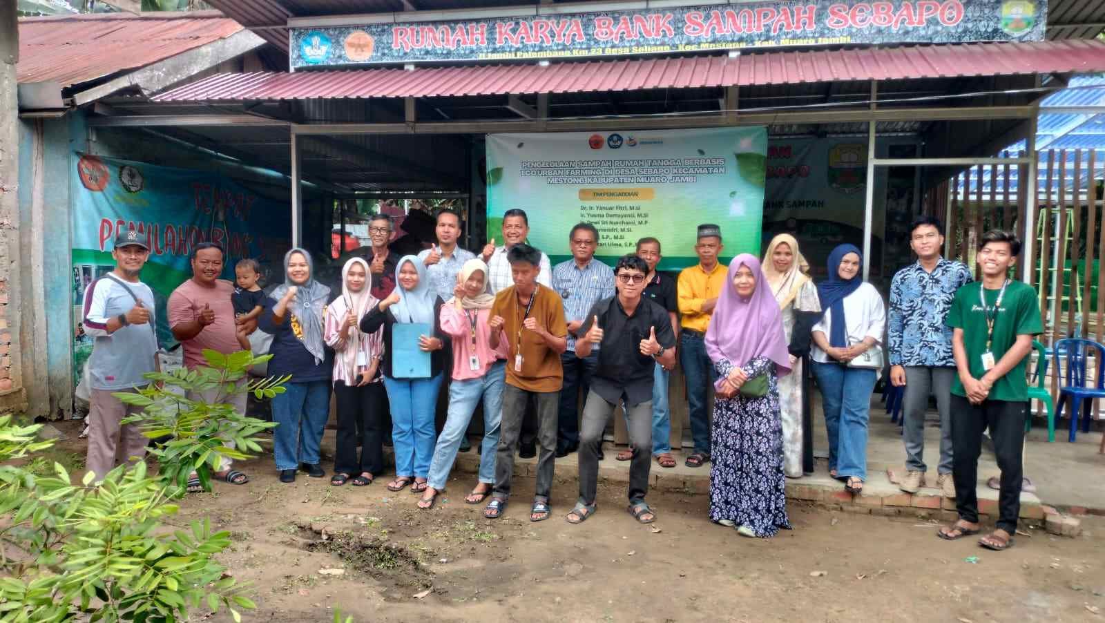 Muaro Jambi,(Benuajambi.com)-.Tim dosen dari Fakultas Pertanian Universitas Jambi (UNJA) melaksanakan kegiatan Pengabdian kepada Masyarakat (PkM) bertema “Pengelolaan Sampah Rumah Tangga Berbasis Eco Urban Farming” di Desa Sebapo, Kecamatan matan Mestong, Kabupaten Muaro Jambi, pada Kamis (2/10/2025).