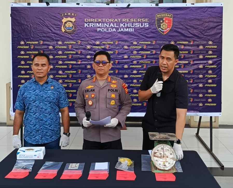 Pengungkapan ini disampaikan Kapolda Jambi Irjen Pol Krisno H. Siregar melalui Kabid Humas Polda Jambi Kombes Pol Erlan Munaji, didampingi Kasubdit I Indagsi AKBP Hernawan Rizky Yudhantoro dan Kanit Subdit I Indagsi AKP Fernando Gultom saat konferensi pers di Mapolda Jambi, Selasa (10/2/2026).