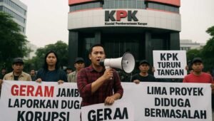 Merangin.(Benuajambi.com) – Puluhan Gerakan Mahasiswa Merangin Jambi (GMM Jambi), kembali berunjuk rasa jilid ll di Kantor Bupati Merangin terkait kasus kebocoran anggaran di DPRD Merangin sebesar Rp 2,2 Milyar, SK PPPK, dan Anggaran Makan Minum Rumah Dinas Bupati Merangin. Senin (10/07/23) Sekira Pukul 13:36 Wib.