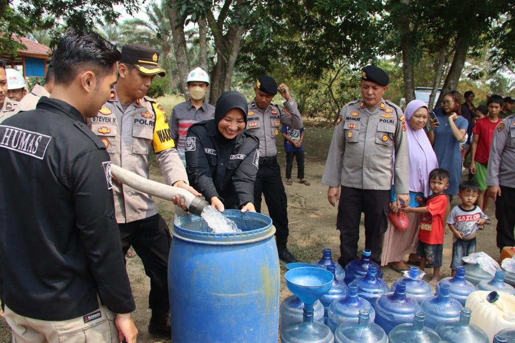 Dalam rangka HUT Humas Polri Ke 72,Polres Muaro Jambi kembali menyalurkan Air Bersih Sebanyak 13.000 liter untuk warga RT.17 desa Bukit Baling.