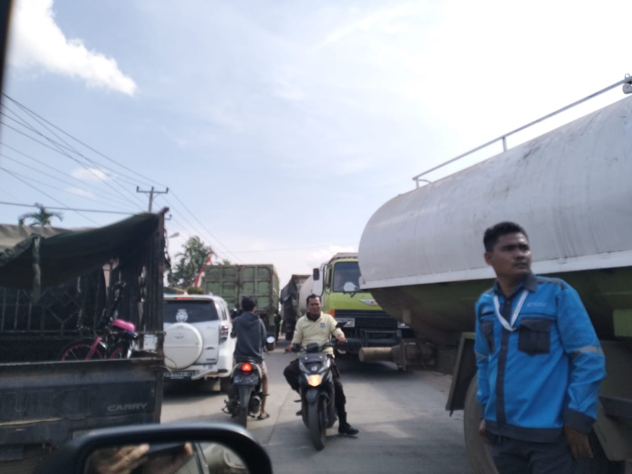 “Benarlah, ko nyampe dak ketempat penganten. Sudah berapo hari ko macet terus. Emang saro nian. Mobil baserak, debu banyak. Bolehlah ditegur lagi PT Pelita dan PT Musimas ko,” keluhnya.