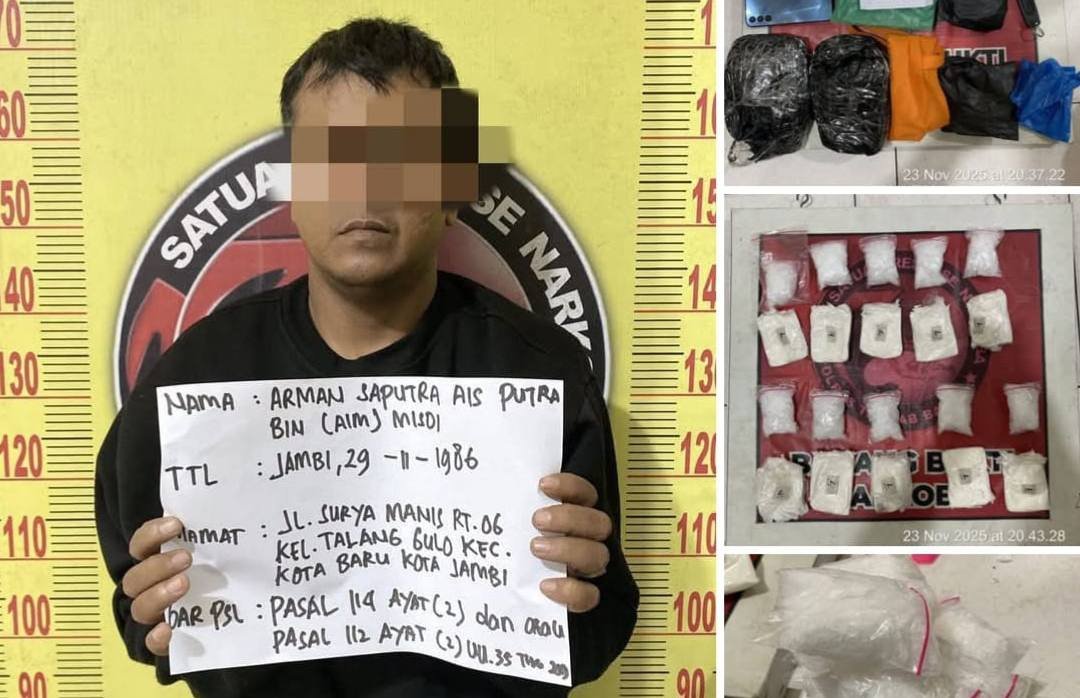 JAMBI.(Benuajambi.com)-Satuan Reserse Narkoba Polres Tanjung Jabung Barat berhasil mengungkap kasus besar peredaran narkotika jenis sabu di Kuala Tungkal. Dari operasi tersebut, polisi menyita 503 gram sabu dan menangkap seorang terduga pengedar berinisial AS, warga Kota Jambi.